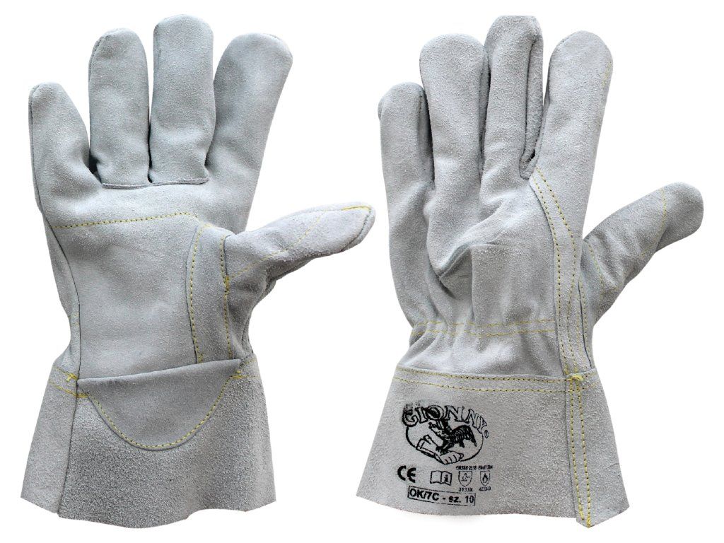 Rukavice z hovězí štípenky, dvojitá dlaň, ochrana zápěstí, ochrana palce, prstová vložka, elastická podšívka, kožené manžety o délce 7 cm, kevlarové prošití. - Charakteristiky: robustní, velmi odolné - Výhody: uchopení, ochrana - Oblasti použití: těžké manipulace, vhodné pro styk s horkými materiály a s otřepy.