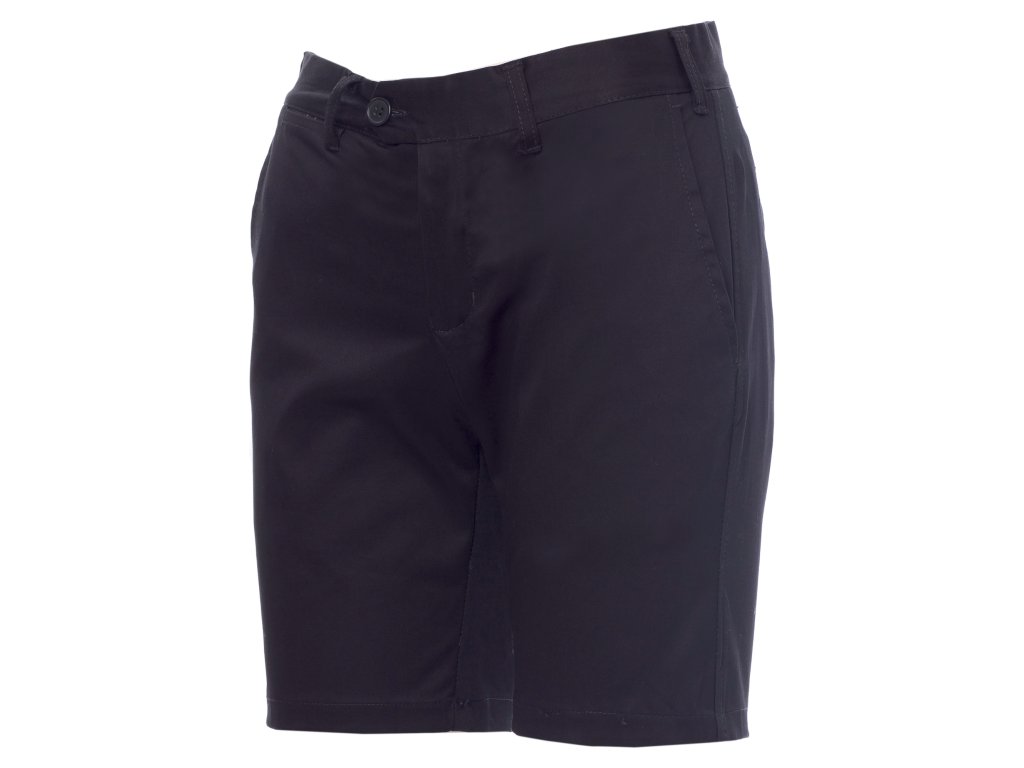 Dámské bermudy klasického střihu s francouzskými kapsami, se zapínáním na zip s knoflíkem, pásek s poutky, dvě zadní štěrbinové kapsy na knoflík.